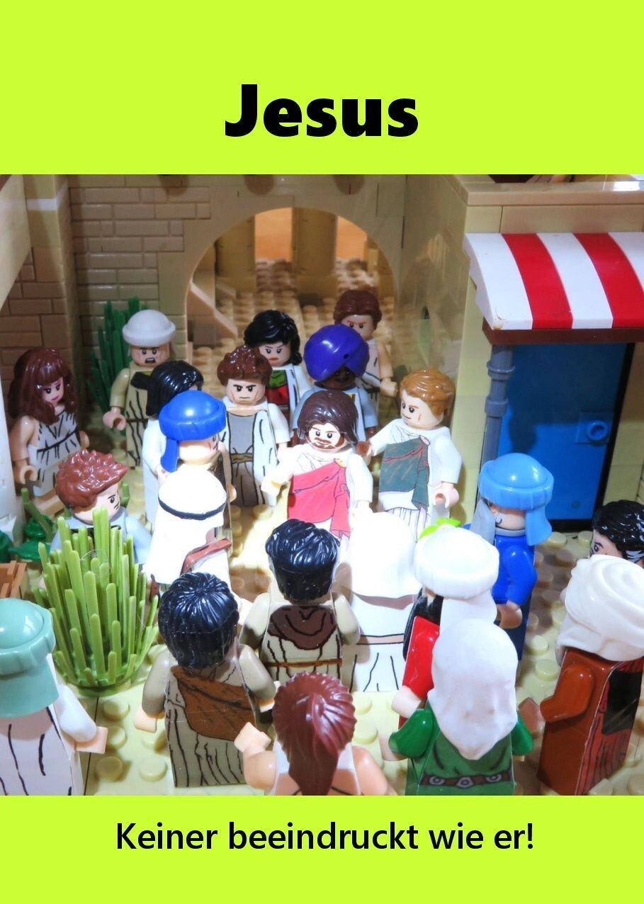 Bei den von uns verwendeten Minifiguren handelt es sich um original Figuren der Marke LEGO©. Es sind sowohl neue, als auch gerbrauchte, und gereinigte Figurenteile. Diese wurden mit selbst entworfenen Aufklebern zu Bibelfiguren umgebaut. LEGO© ist ein Warenzeichen der LEGO©-Gruppe, welche diese Angebote weder gesponsert noch autorisiert hat. Die Benutzung der LEGO© Warenzeichen erfolgt lediglich zur eindeutigen Identifikation der LEGO© Produkte und stellt keine Verletzung der eingetragenen Schutzrechte dar.